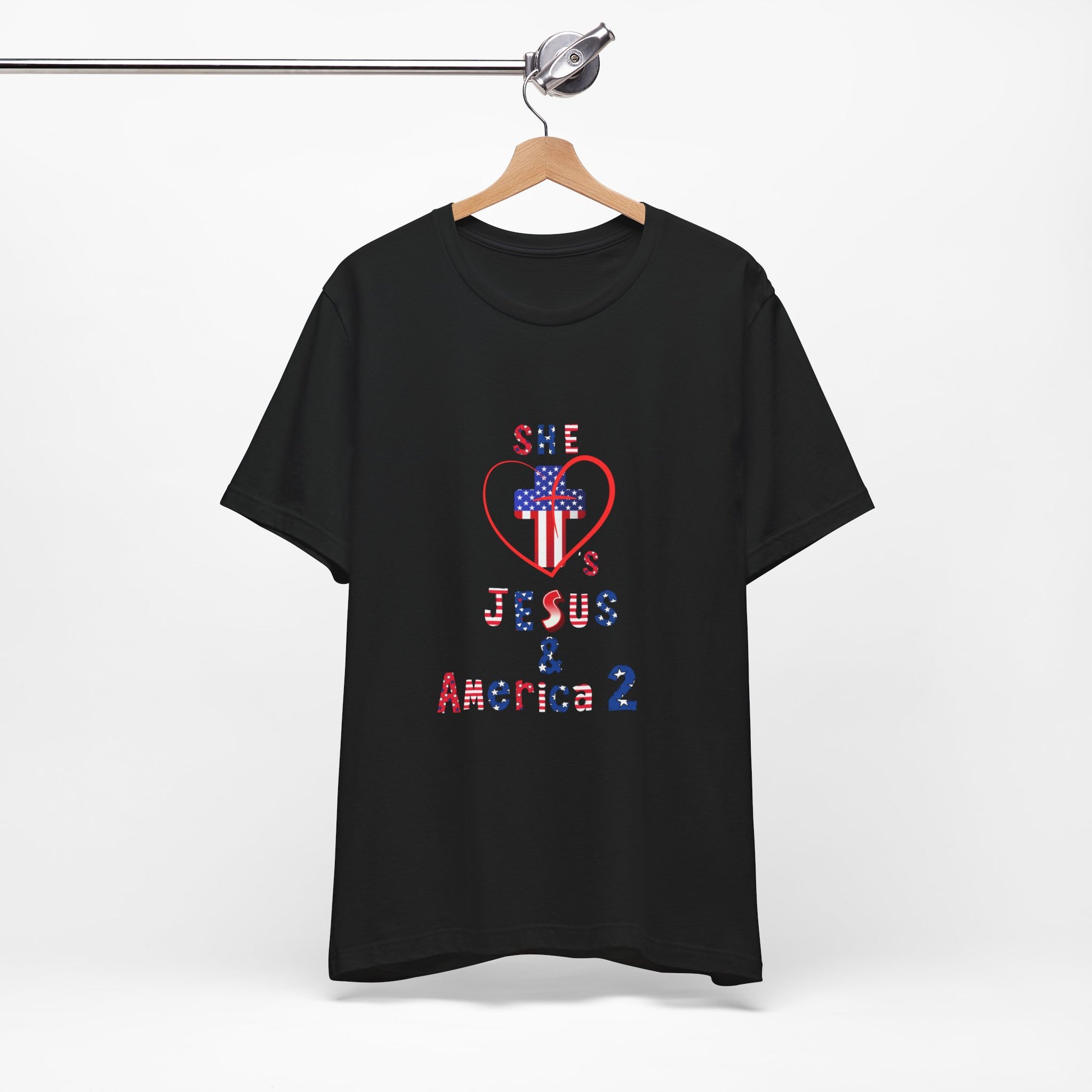 She loves Jesus and America 2 Unisex Jersey Short Sleeve Tee